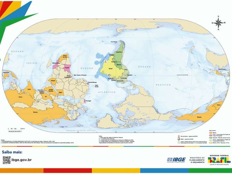 Novo mapa do IBGE coloca o Brasil no centro do mundo