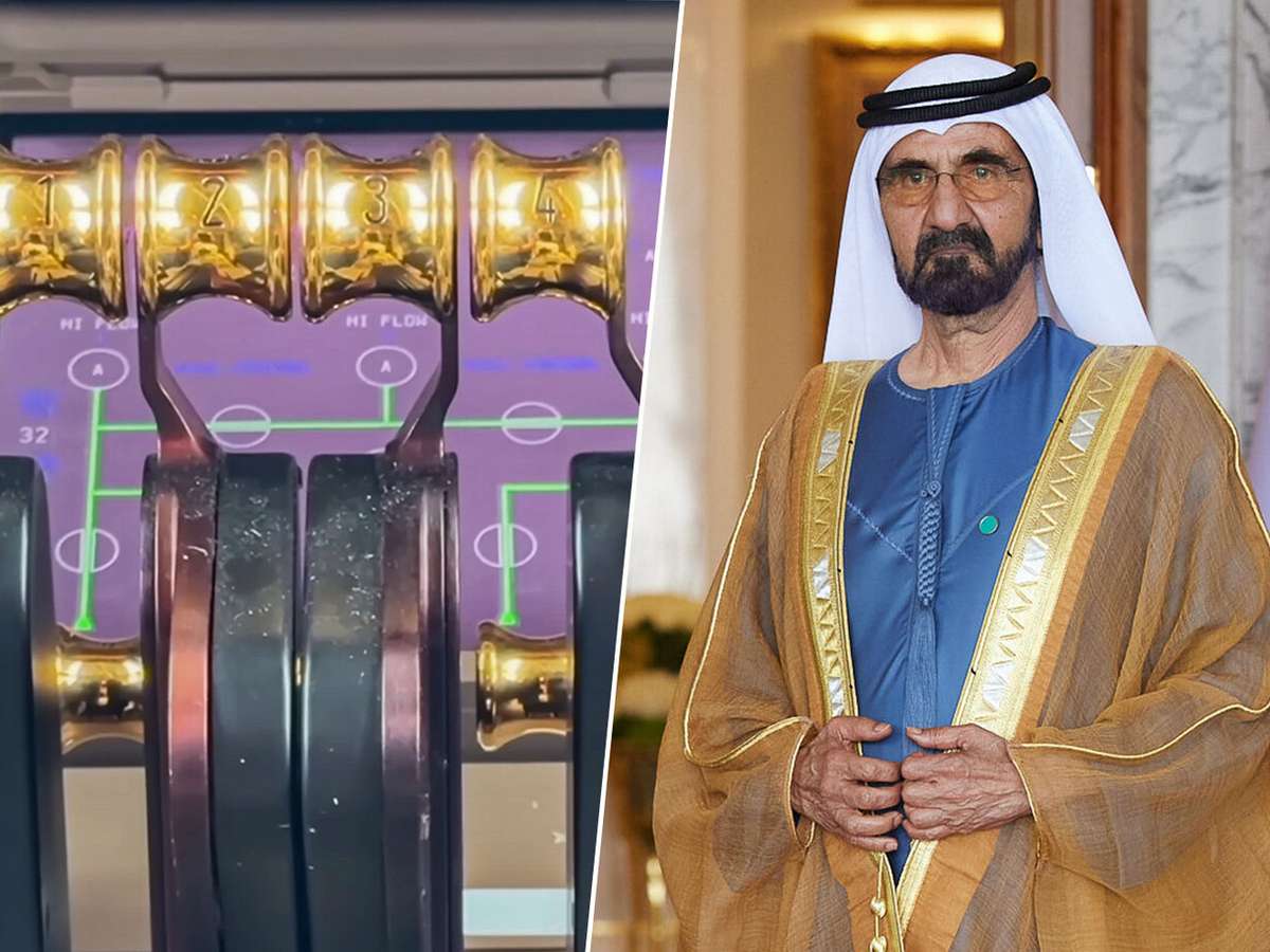 O xeique Mohamed bin Rashid Al Maktoum, emir de Dubai, não se limitou a transformar um dos maiores aviões do mundo em uma mansão voadora: ele também levou o luxo até a cabine dos pilotos, com os controles de motores, flaps e freios revestidos em ouro.