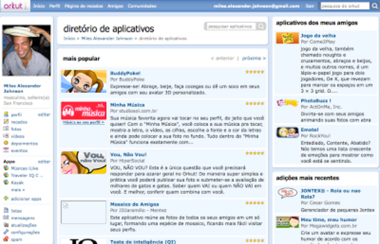 Em novembro de 2007, o Orkut criou um sistema batizado de OpenSocial que permitia aos desenvolvedores e programadores criarem suas próprias ferramentas para a rede social. No lançamento, a companhia explicou, por meio de seu blog, que com a novidade os engenheiros de software de todo o mundo poderiam criar “novas aplicações sociais” no Orkut. Nascia a era dos aplicativos nas redes sociais. À época, eles existiam timidamente como complementos a programas de navegação na internet. Não foi o Orkut quem os fez estourar, mas a rede social certamente popularizou o formato e abriu caminho para sua explosão com a chegada dos smartphones da Apple e do Google. Hoje, potências como a App Store, da Apple, e o Google Play, do Google, devem parte de seu sucesso ao pioneirismo do Orkut.
