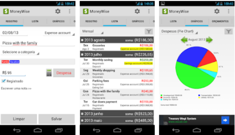 O MoneyWise traz recursos importantes para quem deseja ter controle financeiro. Além de permitir o registro de despesas e criar orçamentos, o aplicativo oferece a possibilidade de marcar cada transação com etiquetas para filtrar a receita do usuário. O MoneyWise dispensa conexão à internet, conta com proteção por senha, monitora os saldos e disponibiliza gráficos de despesas por categoria e por período.