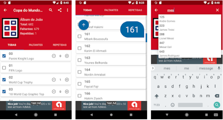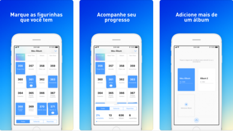 Possibilitando o cadastro de diversos álbuns, o aplicativo permite que o usuário tenha acesso às figurinhas faltantes e repetidas. Um dos diferenciais da plataforma é a pesquisa de figurinhas pelos números.
