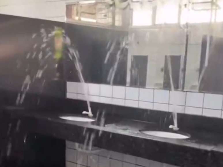 Vídeos gravados por internautas mostram a água jorrando das pias e se acumulando no chão, enquanto um passageiro narra indignado a situação. "O rapaz está roubando as tampas das torneiras tudinho... bicho é um covarde", diz o autor das imagens, que viralizaram nas redes sociais.
