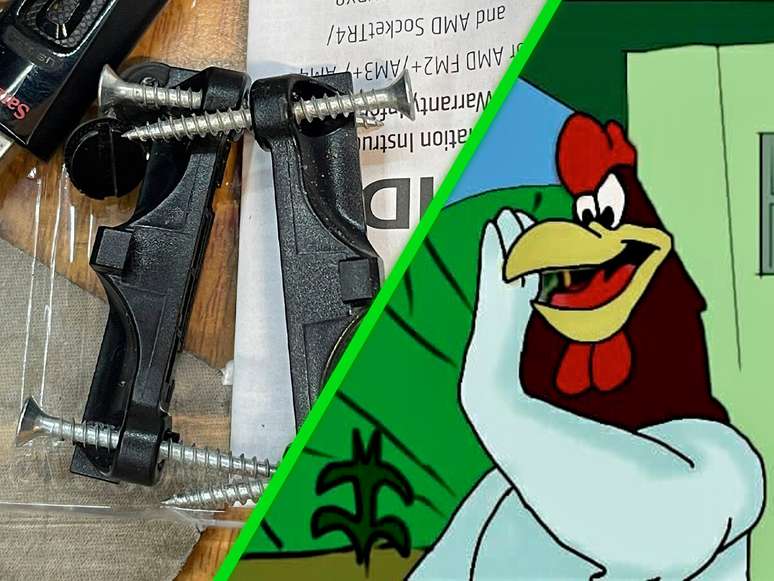 Como relata themajod no subreddit PCMasterRace, o amigo dele ficou surpreso ao descobrir que alguém havia usado parafusos para madeira para prender os componentes. Além de terem as dimensões incorretas, eles poderiam ter danificado a placa-mãe. O curioso é que, apesar de tudo, o equipamento ainda funcionava. O problema de desempenho era simplesmente uma atualização de BIOS.