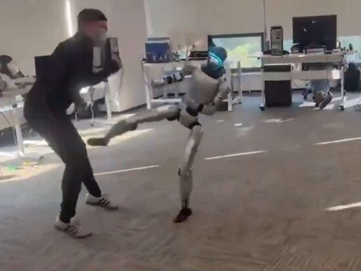 As imagens, publicadas inicialmente na plataforma X, mostram o teleoperador executando movimentos de artes marciais em um espaço reduzido enquanto o robô replica as ações em tempo real. Durante a sequência, ao realizar um chute mais amplo e girar o corpo, o operador acaba sendo atingido pelo movimento espelhado do robô, que acerta sua virilha.