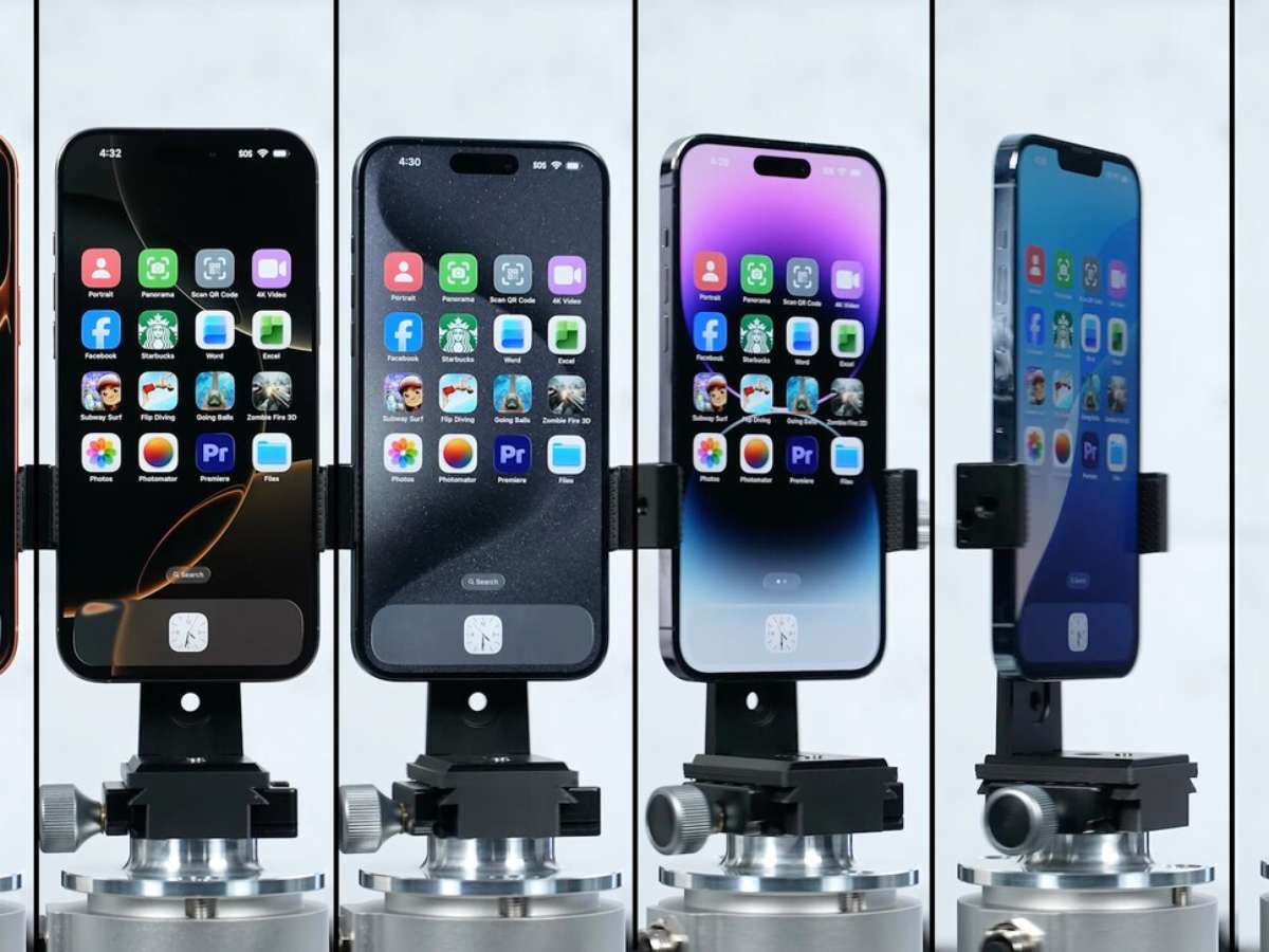 O teste do PhoneBuff não deixa espaço para subjetividade. Todos os iPhones rodavam o iOS 26, com telas calibradas para 200 nits e brilho automático desativado. Além disso, estavam à mesma distância do ponto de acesso Wi-Fi para garantir condições iguais de conectividade. A bateria de testes abrange desde tarefas cotidianas (escanear códigos QR, abrir aplicativos do Office) até tarefas intensas como edição de fotos e vídeos, além de jogos com gráficos exigentes.