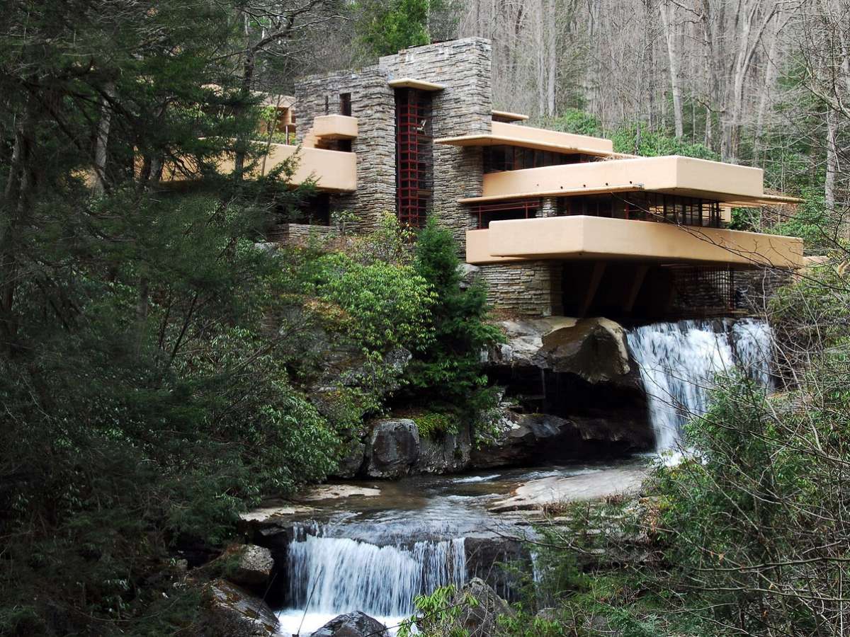 Em 1934, Edgar J. Kaufmann encomendou a Frank Lloyd Wright a construção de uma casa de fim de semana ao lado de uma cachoeira em Bear Run, Pensilvânia. O arquiteto tomou então uma decisão sem precedentes: decidiu não observar a água de longe, mas construir literalmente sobre ela.