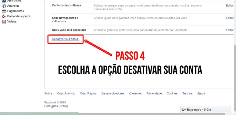 Vale lembrar que, quando o usuário desativa o perfil, ele não ficará visível para outras pessoas nem elas poderão contatá-lo por meio do Facebook. Algumas informações, porém, permanecem, como as mensagens trocadas com amigos, que ficarão disponíveis a quem participou da conversa.