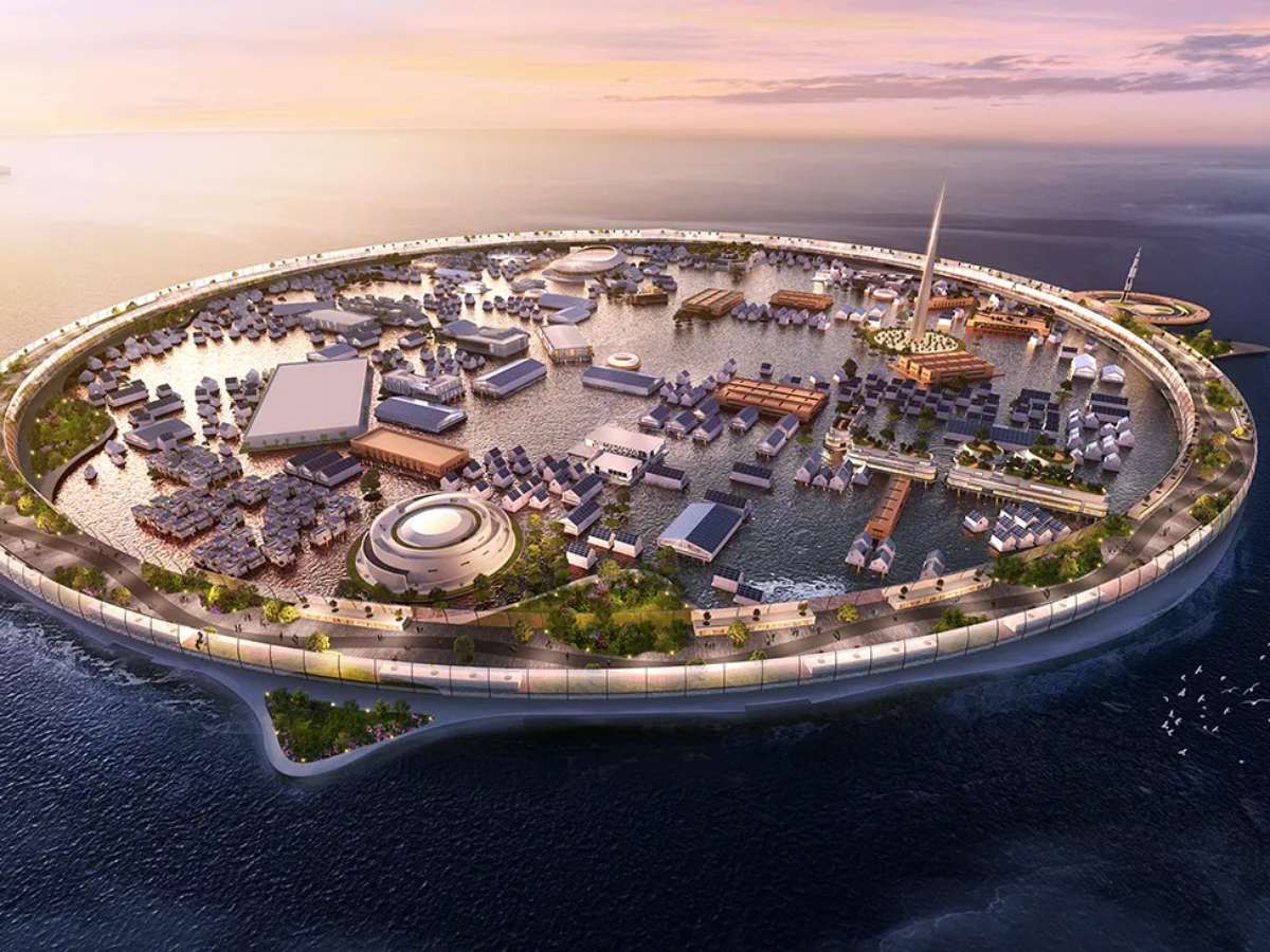 Supercidade flutuante terá hotéis, parques e até estádio; veja imagens