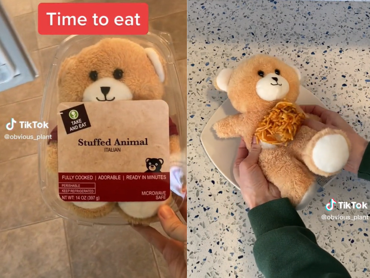 Urso de pelúcia que vira marmita de espaguete viraliza; isso é real?