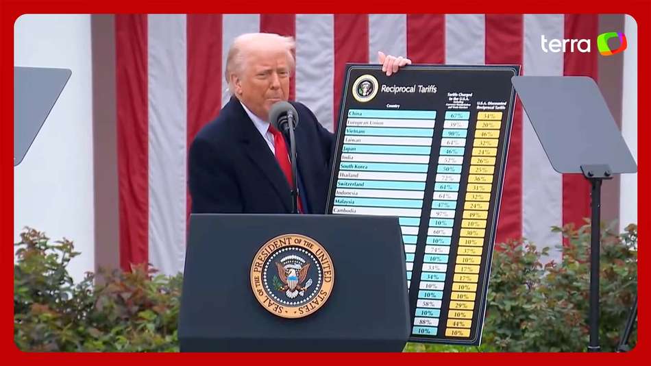 Big techs norte-americanas perdem US$ 800 bilhões em valor de mercado após ‘tarifaço' de Trump. As cinco maiores empresas de tecnologia dos Estados unidos foram impactadas diretamente e perderam bilhões de dólares em ações, segundo o Wall Street Journal. A Apple, com perdas de US$ 290 bilhões lidera a lista, seguida pela Nvidia (US$ 183 bilhões), Amazon (US$ 165 bilhões), Meta (US$ 104 bilhões) e Broadcom (US$ 65 bilhões). A explicação se dá pelo fato destas empresas terem fábricas ou importarem componentes de países taxados pelo presidente dos EUA na Ásia, como a China por exemplo. Reprodução/The White House/Youtube