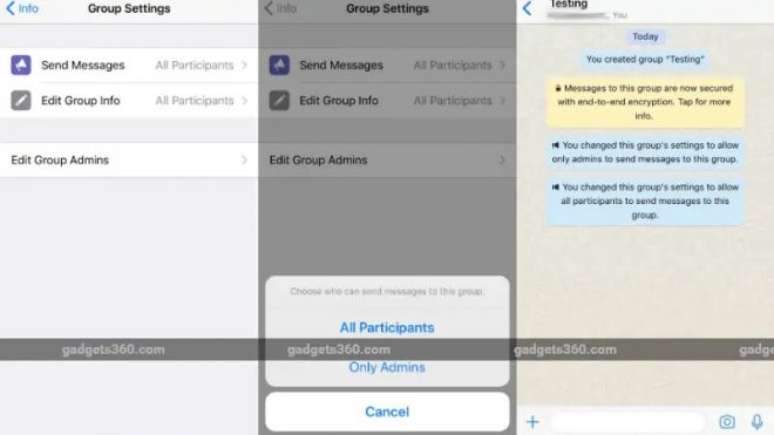 Da mesma forma que a recente função de editar informações de grupos, as configurações de envio de mensagens poderão ser restringidas apenas para os administradores ou liberada para todos os participantes do grupo.