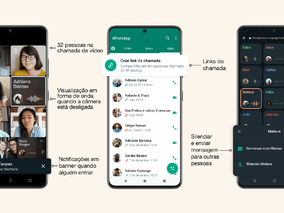 WhatsApp anuncia novos recursos para chamadas de voz e vídeo em grupo