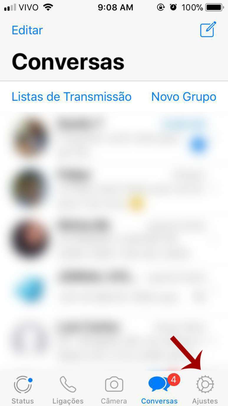 1. Abra o WhatsApp em seu iPhone e toque em "Ajustes" na barra inferior.