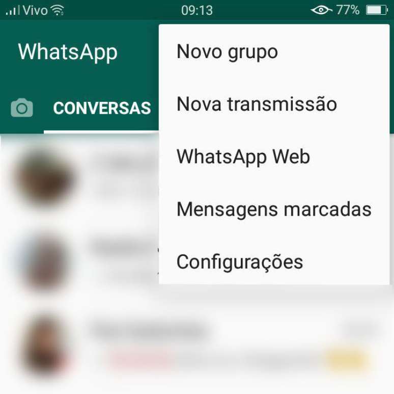 1. Abra o menu do WhatsApp tocando no ícone de três pontos, no canto superior direito da tela.
