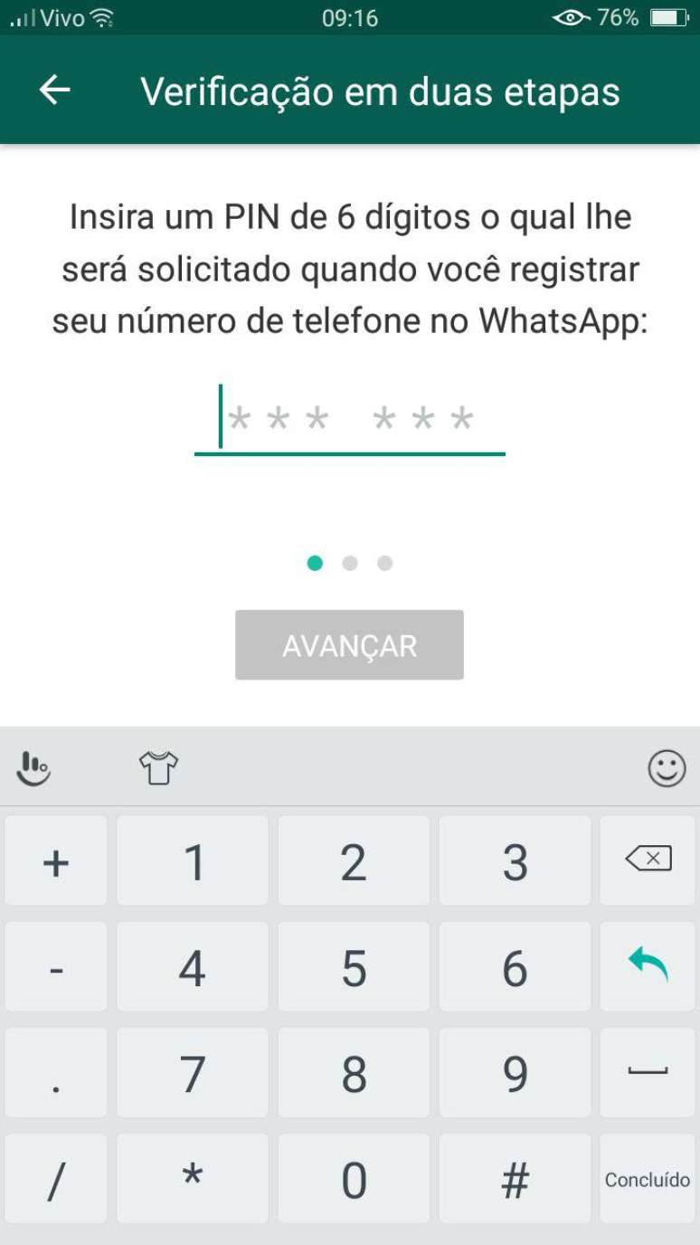 6. Na tela seguinte, será necessário escolher um PIN de seis dígitos.