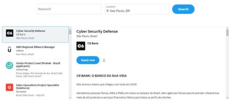 Neste momento, o recurso está em inglês e há poucas vagas disponíveis no Brasil, a maioria para a área de tecnologia e ofertadas principalmente em capitais. É possível que a ferramenta evolua e passe a trazer mais oportunidades para o mercado nacional, futuramente.