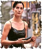 branco", Neo encontra Trinity (Carrie-Anne Moss), uma beldade rodeada