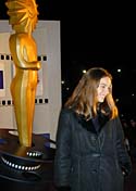 A modelo e atriz da Rede Globo Regiane Alves teve de esperar cerca de cinco minutos antes de entrar no Palácio dos Festivais para assistir aos filmes da noite. Ela aguardava um amigo, e não podia entrar antes porque estava com o ingresso dele. Regiane, que recentemente interpretou a mimada Clara em Laços de Família, disse que está internacional, e descreveu sua indumentária: casaco de couro uruguaio, botas argentinas e uma bolsa de Nova York.