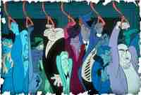 Nem se abale por isso. Está para começar o terceiro segmento - a "Rhapsody in Blue". Não é de hoje que o diretor Eric Goldberg afirma sua admiração pelo lendário caricaturista Al Hirschfield, que já inspirou o personagem do gênio de Alladin. Goldberg une agora esses dois clássicos americanos - Hirschfield e Gershwin - no episódio mais audacioso e criativo de "Fantasia 2000". O traço de Hirschfield não tem nada a ver com as produções da Disney. O resultado é um visual diferente e uma história permeada de conotações sociais, desenrolada em Nova York, durante a recessão dos anos 30.