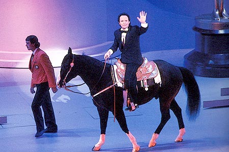 O apresentador Billy Crystal entra no palco com um cavalo na 63ª edição