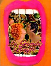 Antes de expressão popular, um objetivo literal. De cara, remete-se ao clássico O Anjo Exterminador. Mas há a diferença básica entre a cena buñueliana e a proposta de Ferreri. Lá, os convivas de um jantar são deixados trancados a fenecer sem razão aparente, mas se angustiam e buscam a saída. Em La Grande Bouffe, os anfitriões se obrigam ao cárcere. Tem a intenção do fim iminente. Aceitam convidadas, sim, quando o piloto Mastroianni protesta por não ter direito ao último ato sexual. Prostitutas são contratadas para logo se descobrir que o homem é um garanhão. Mas elas são acessórios da cena, regalos para moribundos. A única figura feminina importante é a gordinha Andréa (Andréa Ferreol), professora que se sintoniza com o regime de engorda do grupo e talvez seu movimento final.