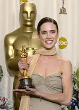 Jennifer Connelly conquistou neste domingo o primeiro Oscar da noite, o de melhor atriz coadjuvante, por seu papel em Uma Mente Brilhante, um filme no qual interpreta a esposa do matemático John Nash. O primeiro Oscar da 74ª edição dos prêmios de Hollywood foi para o filme do diretor Ron Howard, que aspira um total de oito prêmios, da mesma forma que o musical Moulin Rouge, abaixo das treze candidaturas de O senhor dos anéis. O Oscar foi entregue a Jennifer Connelly pelo porto-riquenho Benicio del Toro, ganhador no ano passado do prêmio de melhor ator coadjuvante por Traffic, com um papel falado em espanhol. Ao receber o Oscar, Connelly assegurou que nenhum papel a emocionou tanto como o que interpreta no filme: a esposa abnegada do prêmio Nobel de Matemática John Nash, durante as décadas de luta contra a esquizofrenia deste. A atriz agradeceu especialmente a colaboração de Howard e do protagonista masculino, Russell Crowe, que aspira o Oscar de melhor ator. Connelly era a grande favorita para ganhar o Oscar pelo papel que interpreta em Uma mente brilhante. Esta era a primeira candidatura ao Oscar de Connelly, de 31 anos. O papel da salvadorenha Alicia Nash já lhe valeu o Globo de Ouro nesta mesma categoria. As outras candidatas ao Oscar na categoria de melhor atriz coadjuvante eram as britânicas Helen Mirren e Maggie Smith por Assassinato em Gosford Park, Marisa Tomei por Entre Quatro Paredes e a também inglesa Kate Winsle por Iris. Veja também: » Lista completa dos premiados