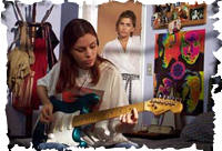 A seguir, uma cena de apenas um plano, envolvendo Guida e Márcia. Guida está tocando guitarra e sua mãe vem fazer perguntas. Ficamos algum tempo discutindo as mudanças de foco, mas, depois de alguma hesitação, fizemos com duas alternativas. Na montagem, vemos qual é a melhor.