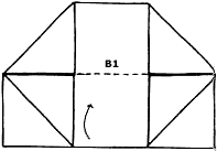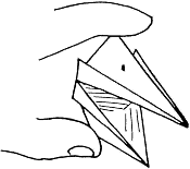 [livros para ler][wallpaper][seção depois da aula] BICUDO Figura 1: Começar com um papel retangular de razão 3 : 4 entre os lados. Voltar o lado branco do papel para cima. Dobrar o retângulo ao meio (dobra montanha - A) e marcar as linhas B1 e B2 com dobras tipo vale. As bordas do papel (C1 e C2) devem coincidir com a linha A. Depois de marcadas as linhas A, B1 e B2, refazer a dobra A antes de passar para a etapa seguinte. Figura 2: Dobrar da forma vale nas linhas D1, D2, D3 e D4 fazendo com que as arestas E1, E2, E3 e E4 coincidam com a linha B1. O resultado deverá ficar igual à figura 3. Figura 3: Dobrar da forma vale em B1. O resultado deverá ficar igual à figura 4. Figura 4: Virar o papel para o outro lado. Figura 5: Dobrar em D5 e D6 e depois em B2. Figuras 6 e 7: 6 7 Fazer um pequeno corte na linha A (indicada pela tesoura); o corte deve ser feito nas duas superfícies do papel (frente e trás). Dobrar da forma vale nas linhas C1 e C2; repertir as dobras do outro lado. Figura 8: Segure o bicudo como mostra o desenho para que ele abra e feche a boca. O Bicudo e outras dobraduras estão em Origami, A Divertida Arte das Dobraduras William Gilbert Editora Nobel Clique aqui para comprar volta para a página anterior [livros pra ler][wallpaper][seção depois da aula]