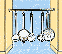 Para ajudar a manter as superfícies limpas, utilize um suporte entre dois armários para pendurar utensílios pequenos.