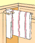 Instale um suporte de pano de prato entre dois armários para mantê-lo à mão. Ou use os espaços entre os armários para guardar assadeiras e bandejas.