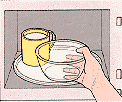 Para saber se a travessa não vai superaquecer, coloque-a com uma xícara de água na potência máxima por 2 minutos. A água deve esquentar e aquecer a xícara e a travessa ficar fria.