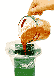 Molde um líquido em um saco plástico para guardá-lo facilmente no Freezer. Coloque o saco em uma caixa de papelão vazia. Despeje o líquido e congele. Tire o saco e lacre-o.