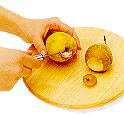 Para remover as partes marrons e danificadas, passe o descascador de legumes de um lado a outro de cada saliência antes de fatiar.