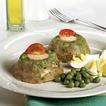Escalde as ervilhas em água quente e reserve. Aqueça o óleo em uma panela e doure a cebola. Junte os tomates e a salsinha e refogue por 3 minutos. Em seguida, junte o sal, a pimenta e 3 xícaras (chá) de água. Assim que levantar fervura, adicione, aos poucos, a farinha de milho e cozinhe por 10 minutos, mexendo de vez em quando. A mistura deve ficar cremosa. Retire e junte a gelatina, dissolvida conforme as instruções da embalagem. Umedeça 10 forminhas individuais com capacidade para 100 ml cada uma e forre o fundo com palmito. Monte camadas alternadas do creme de farinha, ervilha, sardinha e palmito e leve à geladeira por 2 horas, ou até ficar firme. Retire, desenforme e sirva com ovos cozidos.