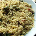 Pique grosseiramente as fatias de bacon, coloque em uma frigideira e leve ao fogo baixo para que o bacon comece a dourar. Acrescente a manteiga e a cebola picada. Aumente o fogo e refogue para que a cebola fique macia. Adicione a farinha de mandioca e vá misturando constantemente. Deixe a farinha adquirir um tom levemente dourado, acrescente os ovos e mexa rapidamente para que os ovos cozinhem como ovos mexidos. Coloque as azeitonas picadas e a salsinha. Tempere com sal e pimenta-do-reino.