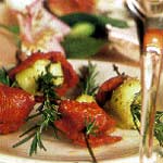 Aqueça o forno à temperatura média. Em uma tigela, coloque o azeite de oliva, o zimbro, o vinho e o sal. Esmague o zimbro, acrescente os nozinhos, misture e deixe tomar gosto por 15 minutos. Em seguida, espete um ramo de alecrim por dentro de cada nozinho de queijo e complete com o tomate seco. Regue com o tempero de azeite e zimbro e salpique o orégano. Coloque os espetinhos em uma assadeira e leve ao forno por 5 minutos, ou até o queijo começar a dourar.