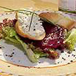 Descasque e fatiar as beterrabas em fatias de 1 cm, arrume em pratos individuais um pouco de folhas verdes, coloque sobre elas algumas fatias de beterraba assada e sobre as beterrabas coloque as torradas com o queijo. Regue com um fio de azeite de oliva.