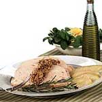 Para acompanhar, sirva salada de agrião com fatias de laranja e azeite de oliva, purê de ameixa fresca ou ameixas secas, picadas e refogadas na manteiga e cozidas em um pouco de vinho do Porto. Para obter um peito de peru mais temperado, coloque um peso sobre a carne já temperada e deixe na geladeira de um dia para o outro. Antes de assar, deixe descansar por 1 hora fora da geladeira.