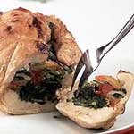 Peito de peru recheado com rúcula e tomate