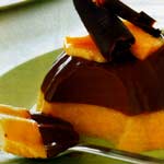 Bavaroise de melão: em uma tigela coloque a gelatina para amolecer em água fria por 15 minutos. Esprema bem, coloque em uma panela pequena, junte o licor e deixe derreter em fogo baixo sem ferver. Bata a polpa de melão no liquidificador, trabfira para uma tigela e junte a gelatina esprimida. À parte, bata os ovos com o açúcar. Coloque em um refratário, despeje o leite e cozinhe o creme em banho-maria, mexendo sem parar até encorpar. Deixe esfriar, mexendo de vez em quando. Em seguida, misture o creme à polpa de melão e adicione delicadamente o creme de leite batido. Retire a fôrma da geladeira e despeje o bavaroise de melão sibre a de chocolate. Cubra a fôrma com filme plástico e leve à geladeira por pelo menos 1 hora. No momento de servir, desenforme a bavaroise sobre um prato e decore com o melão picado e com as lascas de chocolate.