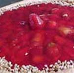 Corte os morangos na metade e decore a superfície da torta. Para a cobertura final, misture o açúcar à gelatina e coloque a araruta. Misture bem. Acrescente aos poucos a água e continue misturando. Leve ao fogo e cozinhe até engrossar. Deixe esfriar um pouco e despeje sobre a torta. Salpique com as castanhas de caju picadas e leve à geladeira.