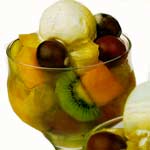 Corte a manga em cubos médios e o kiwi em fatias. Em seguida, divida as fatias de kiwi ao meio. Em uma panela grande, coloque a manga, o kiwi, as uvas e o abacaxi. Regue com o vinho e o licor e leve ao fogo por 2 minutos, ou até todos os ingredientes ficarem aquecidos. Retire do fogo e sirva com frutas ainda quentes acompanhadas de sorvete de creme. Se preferir, regue com calda de caramelo.