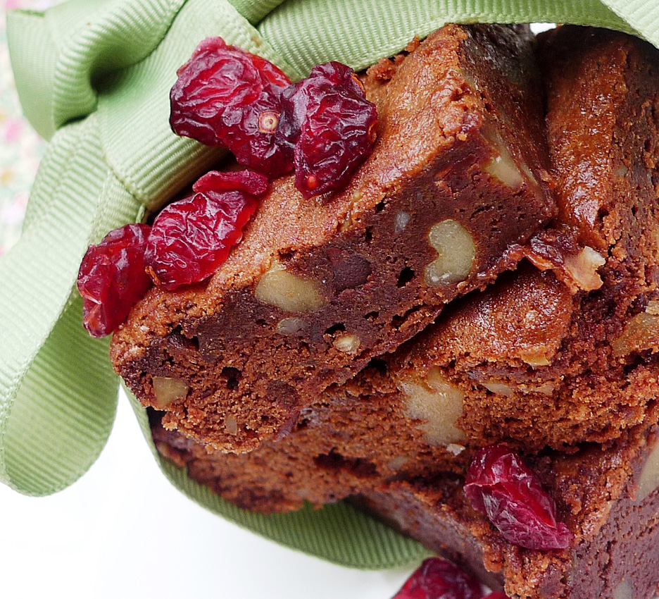 Acrescente as cranberries secas e as nozes picadas e mexa cuidadosamente. Coloque em uma assadeira retangular de 40x28cm forrada com papel manteiga, para facilitar a remoção do brownie. Asse em forno pré aquecido a 180°C por aproximadamente 30 minutos. Deixe esfriar e corte em quadradinhos antes de servir.