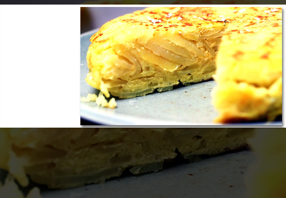 Corte as batatas em fatias de aproximadamente 3mm e tempere-as com sal e pimenta-do-reino. Coloque em uma frigideira antiaderente grande 150 ml de azeite de oliva ou o que baste para cobrir as batatas. Aqueça bem, acrescente as cebolas até ficarem transparentes, reserve. No mesmo azeite, acrescente as fatias de batata e cozinhe em fogo baixo virando regularmente com uma espátula, por cerca de 30 minutos ou até que estejam quebradiças. Escorra as batatas e elimine o óleo que restou na frigideira. Quebre os ovos em uma tigela e tempere levemente com sal e pimenta-do-reino, acrescente as batatas confitadas e a cebola. Aqueça novamente a frigideira e acrescente o azeite restante. Despeje a mistura de batatas e ovos e abaixe o fogo ao mínimo. Coloque uma tampa na frigideira e doure a fritada de um lado. Deslize a fritada em um prato grande, segure-o em uma mão e com a outra mão coloque a frigideira sobre a fritada, como se fosse uma tampa. Vire os dois juntos para que o lado cru fique em baixo da frigideira. Leve ao fogo novamente e doure. Retire da frigideira e deixe esfriar levemente antes de servir.