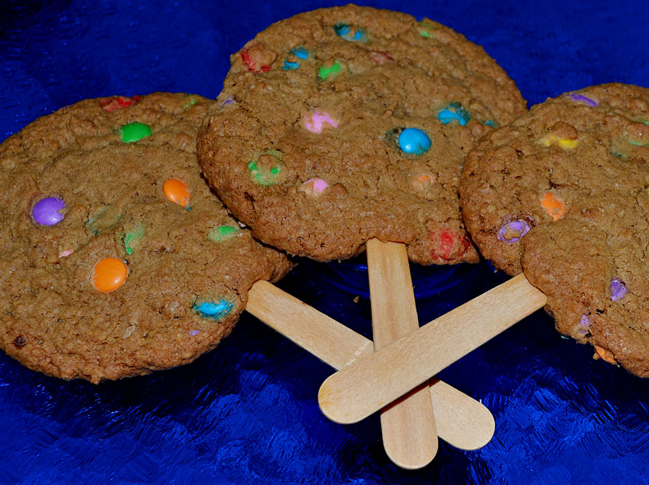 Misture os açúcares, adicione os ovos e a baunilha. Mexa os ingredientes secos e junte aos açúcares. Forme bolas e achate-as em formas forradas com papel manteiga. Asse em forno pré-aquecido (140°C) por 30 minutos. Essa receita rende 11 unidades, com 50g cada.