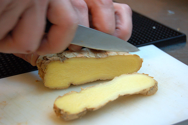 : Um gengibre fatiado.