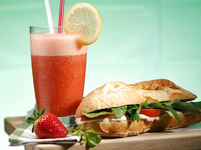 Em uma tigela, misture o atum com o requeijão. Recheie os pães com a pasta de atum e cubra com a rúcula e com os tomates. Sirva. Se desejar, substitua o atum por duas xícaras de chá de peito de frango desfiado.