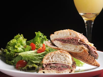 Descasque por completo a cebola, a corte em tiras e deixe cozinhar em água por 20 minutos. Depois, enxugue as tiras com papel toalha. Derreta a manteiga, junte o sal e o açúcar mascavo e deixe cozinhar por um a dois minutos. Acrescente as cebolas, mexa a panela para ficarem todas revestidas por igual e cozinhe por mais cinco minutos, até ficarem carameladas. Tiro do fogo e deixe esfriar. Monte o sanduíche com todos os ingredientes, deixando as cebolas carameladas envolvidas pelas fatias de rosbife.