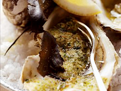 Bata as claras com a cerveja até ficarem no ponto. Acrescente o sal e a pimenta e misture gentilmente. Coloque as ostras em uma forma e despeje uma colher da mistura de claras e cerveja sobre cada uma delas. Coloque no forno para grelhar até que as ostras fiquem douradas.
