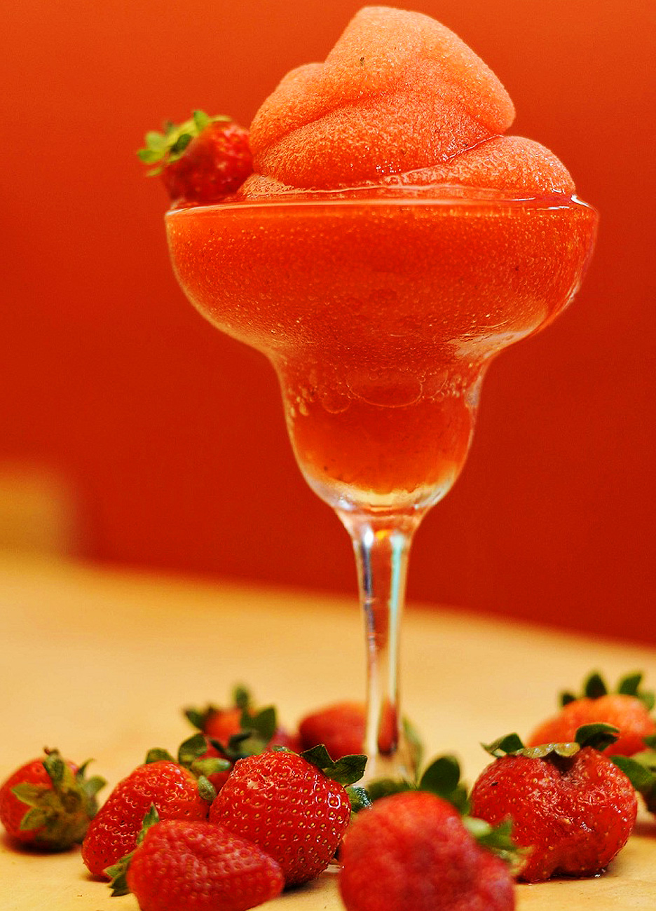 Bata os morangos no liquidificador. Ponha em uma tigela e deixe no freezer por três horas. Hidrate a gelatina na água e dissolva em banho-maria, sempre mexendo, e deixe esfriar. Bata agora no liquidificador os morangos com o creme de leite e o açúcar. Acrescente a gelatina e bata rapidamente. Coloque em taças individuais e enfeite com pedaços de morango.
